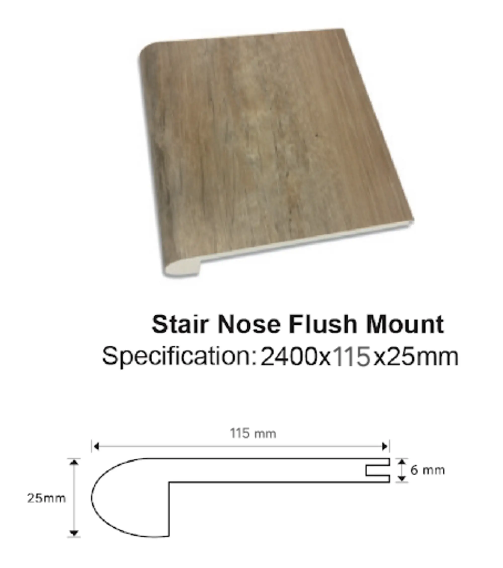 Finish off your stairs with our stair nose moulding. The flush mount finish not only enhances the aesthetic appeal of your staircase but also provides added safety and durability.
